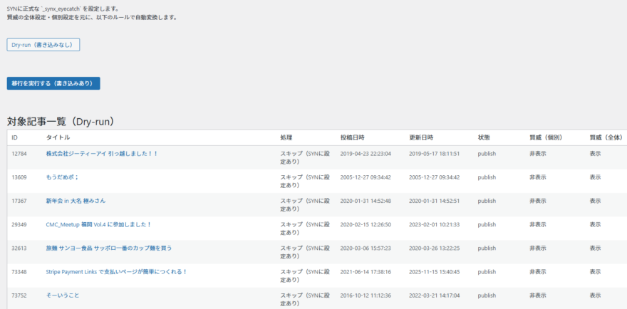 すでに _synx_eyecatch が設定済みの記事は 自動スキップ するため安心です。