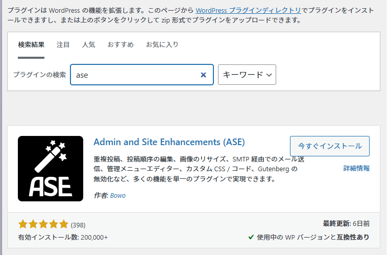 それでもいいんですが、今回は Admin and Site Enhancements、略して ASE を紹介します。